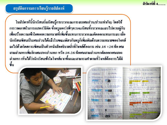 นักเรียนเข้าใจเกี่ยวกับเศษส่วนและทศนิยม เกิดความรู้สึกเชิงจำนวนสามารถหาวิธีการคิดที่เหมาะสมกับตนเอง เห็นความสัมพันธ์ของการบวก การลบ การคูณและการหารเศษส่วน และยังเห็น ความสัมพันธ์ของที่มาของทศนิยมโดยการเชื่อมโยงเข้ากับเศษส่วนอีกทั้งสามารถแก้ปัญหาและให้เหตุผลเกี่ยวกับกระบวนการคิด และสิ่งต่างๆ ที่อยู่รอบตัวอย่างสมเหตุสมผล แล้วนำความรู้ที่ได้รับไปปรับใช้กับชีวิตประจำวันของตนเองได้